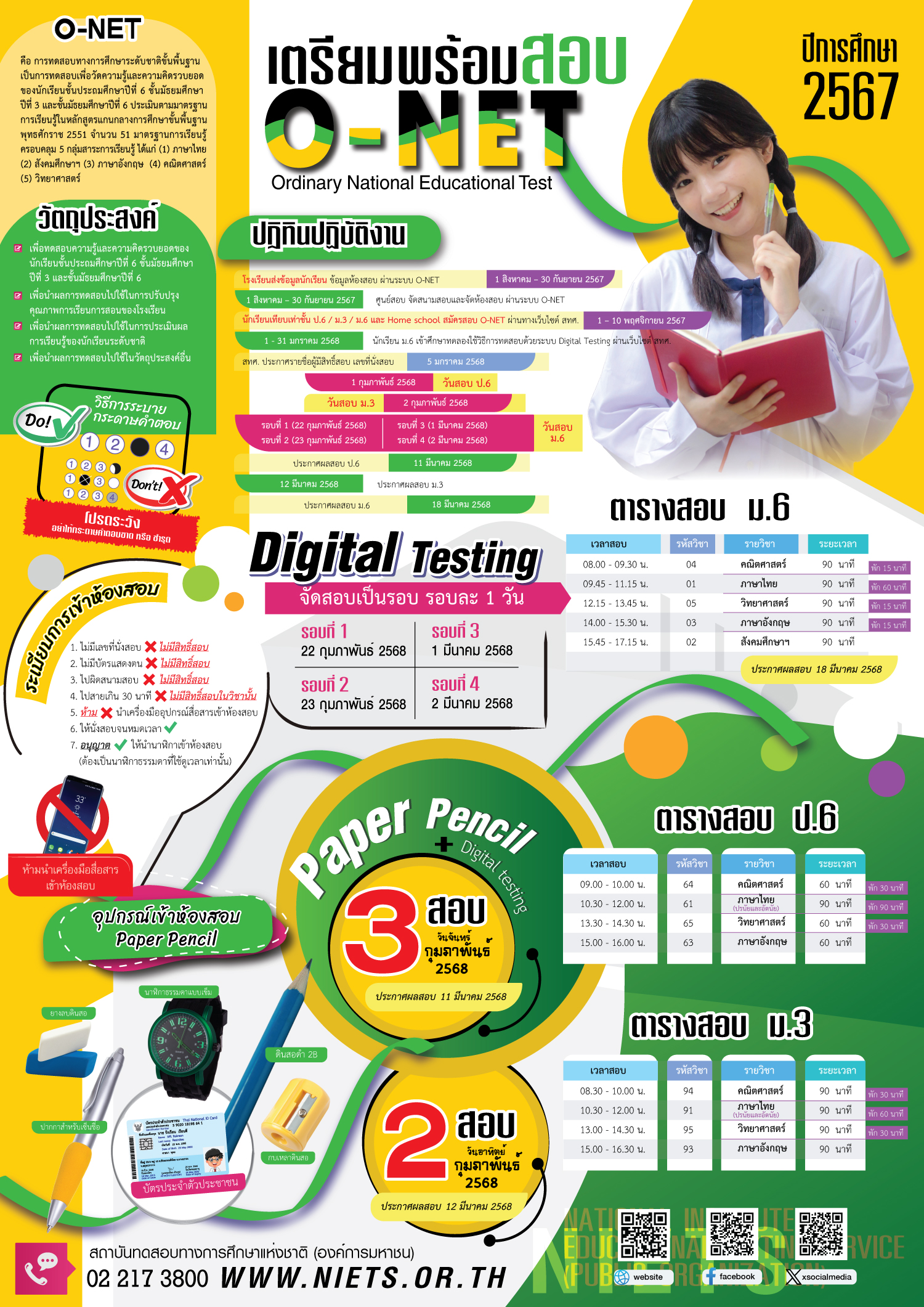 3. การสอบโอเน็ต ป.6 ปีการศึกษา 2568 จะสอบวันไหน?