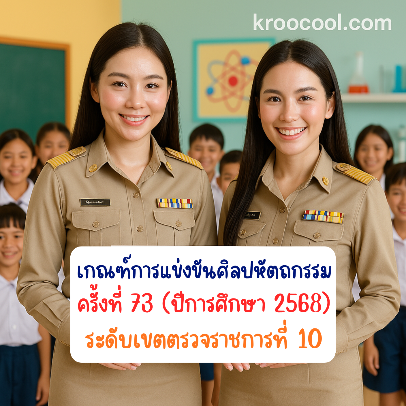 เกณฑ์การแข่งขันศิลปหัตถกรรมนักเรียน 2568 ครั้งที่ 73 (ปีการศึกษา 2568) เขตตรวจราชการที่ 10 สังกัด สพฐ. คลิกที่นี่